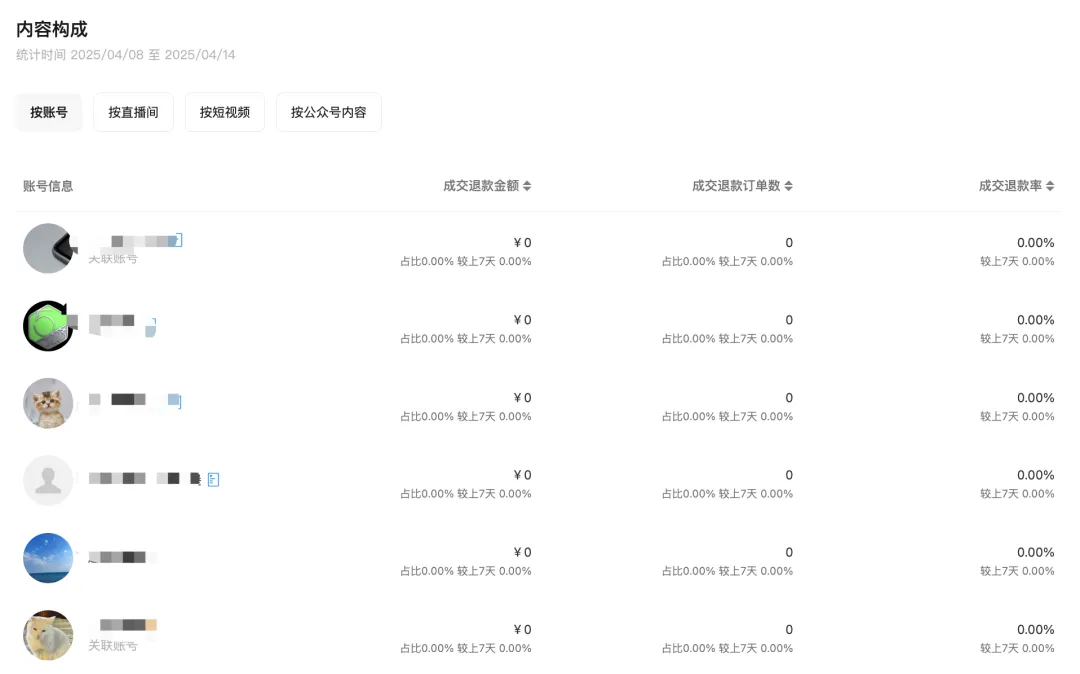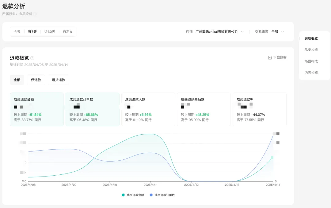 退款概览 | 品类构成 | 退款场景构成 | 退款内容载体构成 |