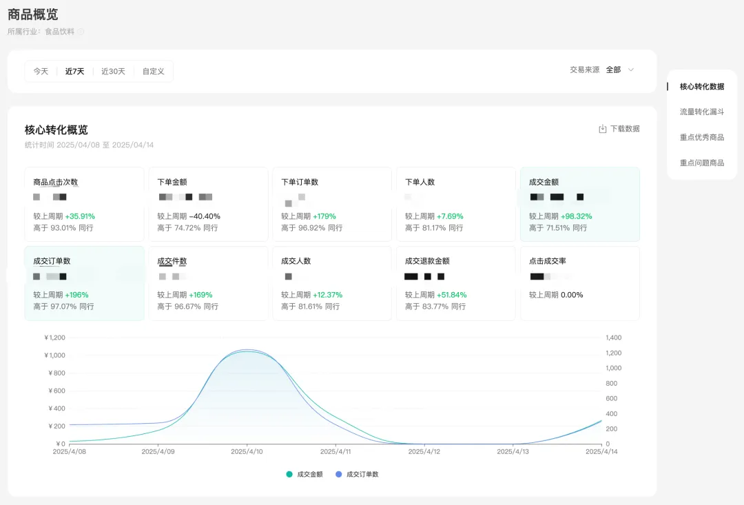 核心概览 | 转化漏斗 | 重点关注商品 |
