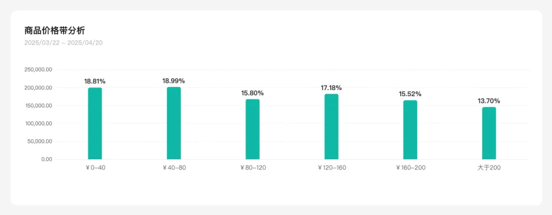罗盘为商家同样准备了该类目下好卖的商品价格带和参数参考,帮助商家针对性的去开发新产品。