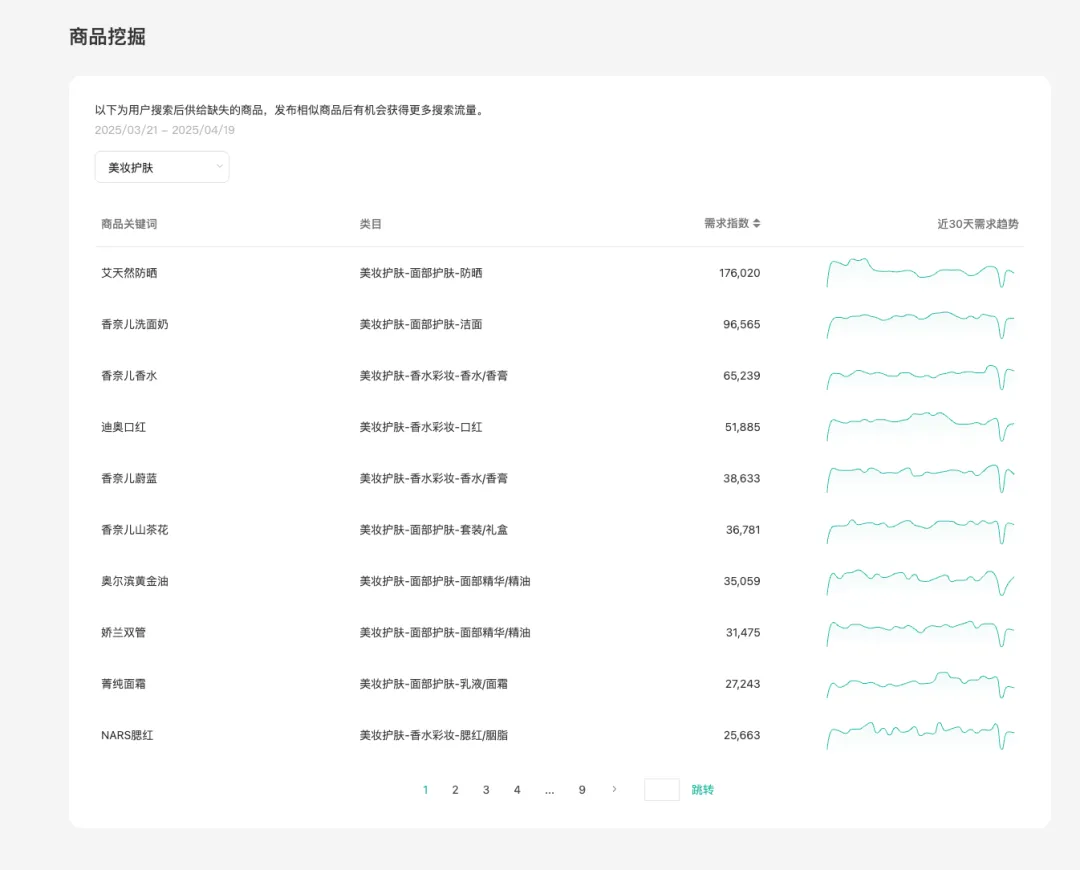 用户在搜索场景里搜索后,因为供给丰富度原因没有展示或者可选择项较少的商品。商家可以定向去上架这些商品,将有机会直接获得搜索流量曝光,促进店铺动销。