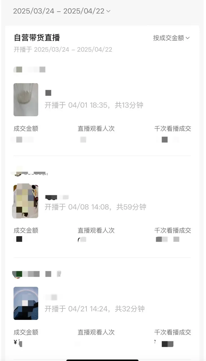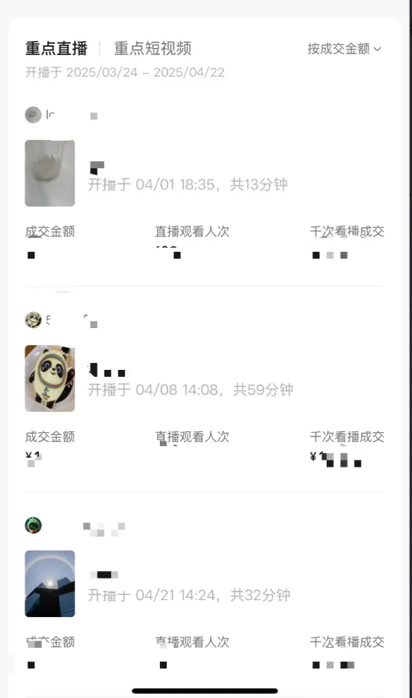 支持主播筛选近期时段开播的直播,通过时长、内容、转化等维度与同行对比,来判断自身的优劣势,以及调整空间。