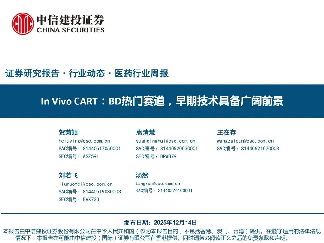 【深度研究报告】In Vivo CART:BD热门赛道,早期技术具备广阔前景