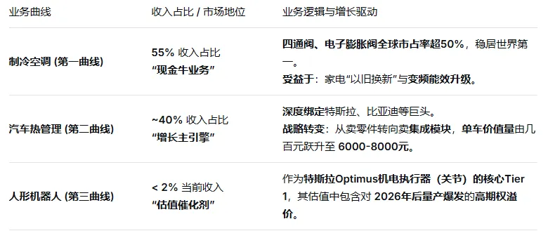今天分析列表中的三花智控,三花智控是全球热管理与精密流体控制领域的绝对龙头,本质上是一家将“精密制造+成本控制”能力从家电成功跨界至新能源汽车,并正试图复刻到人形机器人领域的平台型制造企业。