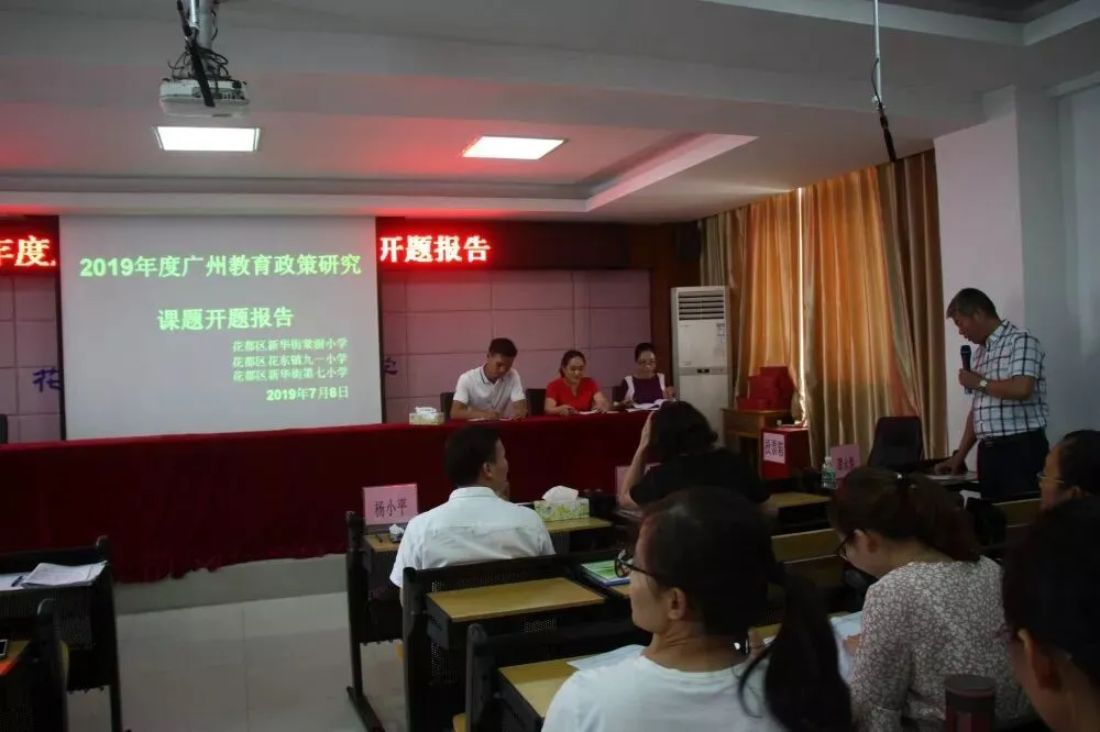为深入推进广州教育政策研究课题的开题工作,促进课题组教师的专业发展,不断优化和提升课题组成员的队伍建设,全面提升教科研能力,2019年7月8日,在花都区新华街第七小学会议室召开了广州教育政策研究课题开题培训会议。此次培训主要针对广州教育政策研究2019年立项课题的课题组教师及七小教师,其中立项的课题有花都区新华街棠澍小学的《广州市花都区小学校内课后托管实施策略研究》、花都区花东镇九一小学的《区域教师队伍高质量发展的体制机制研究》和花都区新华街第七小学的《小学教师专业发展研究》。