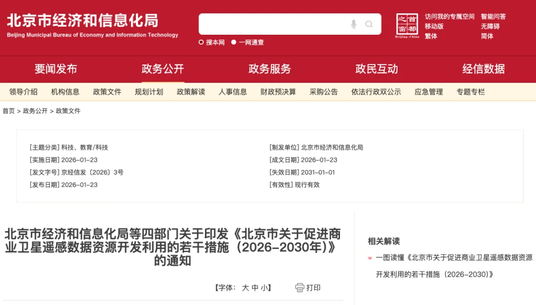 北京市关于促进商业卫星遥感数据资源开发利用的若干措施(2026-2030年)