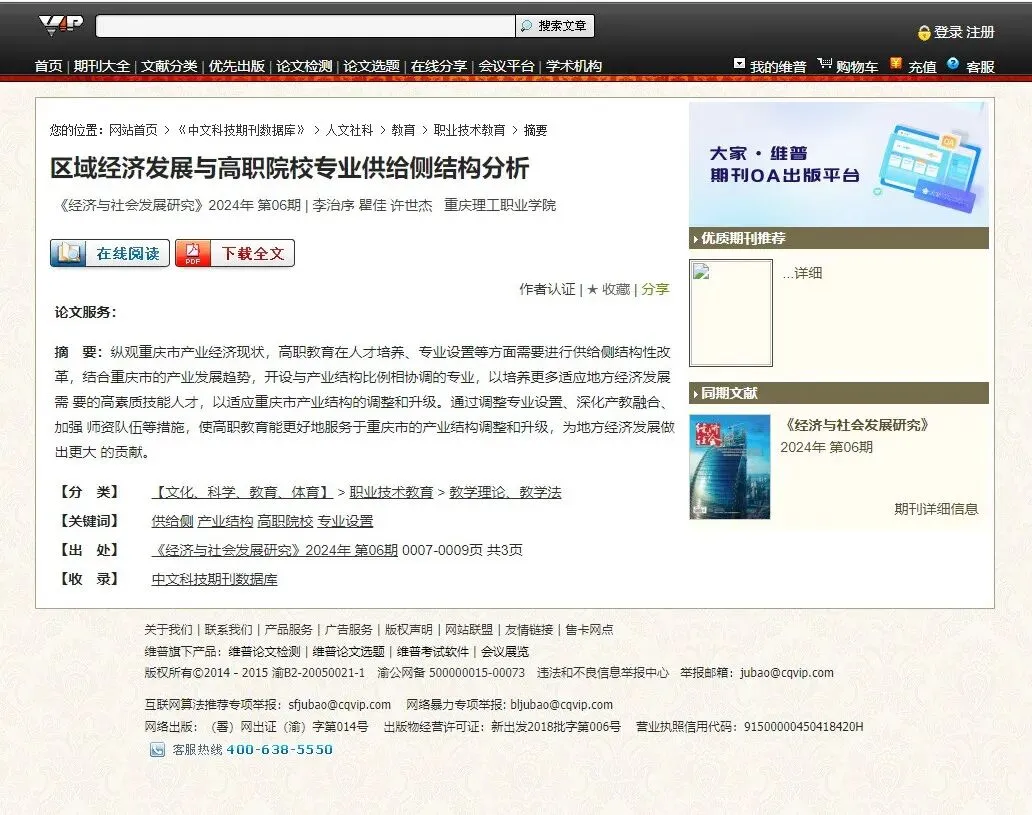 高职教育的发展对于重庆地区的经济社会发展具有重要的战略意义,通过地区经济与高职专业供给侧契合度的浅析,得出以下结论和建议:(1)根据产业结构调整专业结构设置。(2)根据市场需求调整专业课程设置。(3)深化推进产教融合。(4)强化实践教学,提高学生的实践能力和职业素养。(5)加强师资队伍建设。(6)塑造制造业正面形象,提高制造业就业环境。同时,应该注重不同地区、不同类型高职院校的差异性和特点,因地制宜地制定改革方案。另外,还应该加强政策支持和监督评估机制的完善,为高职专业供给侧改革的顺利实施提供保障。