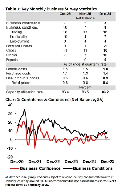 NAB澳洲国民银行开展的专项调查显示,12月澳洲商业环境和商业信心指数均有所回升。