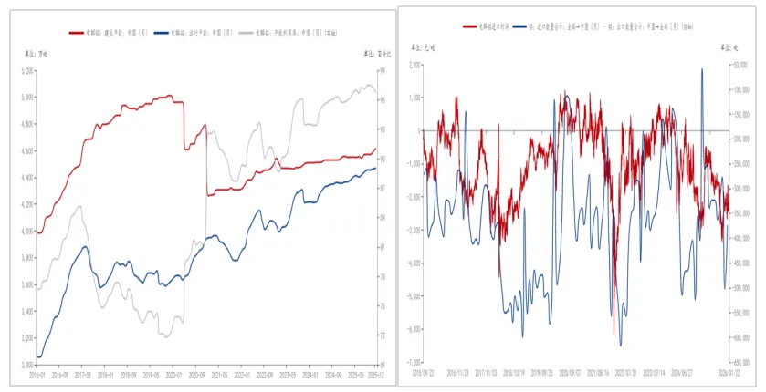 从供给层面分析,全国电解铝产能规模被明确限定在4500万吨的刚性上限。尽管行业产能利用率呈现持续攀升态势,但当前实际运行水平已接近饱和状态,后续提升潜力较为有限。此外,电解铝进口渠道因价格倒挂等因素处于关闭状态,进一步限制了外部供给的补充。