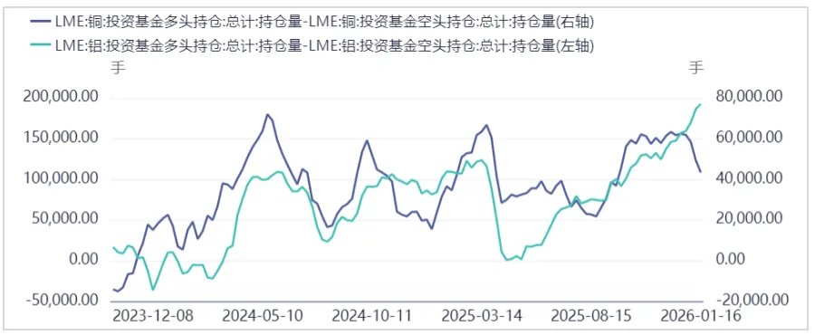图五. LME铝和铜投资基金持仓