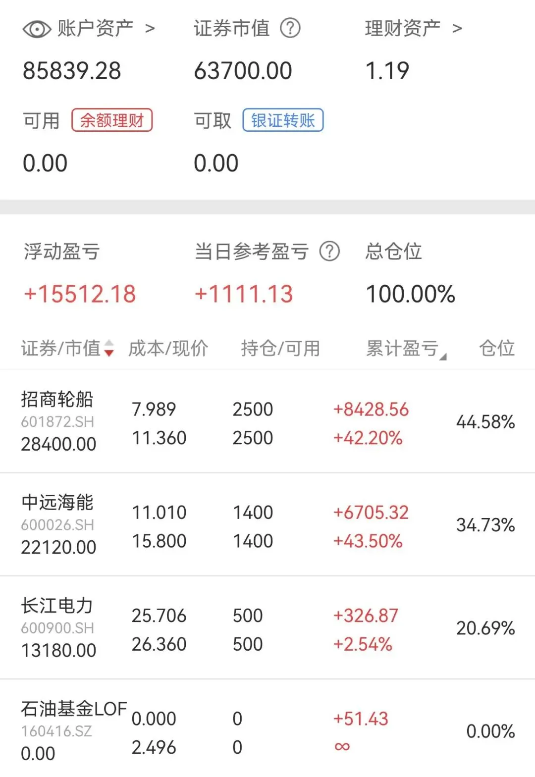 无论我自己的账户,还是这个女儿账户,我的主要仓位还是油运。