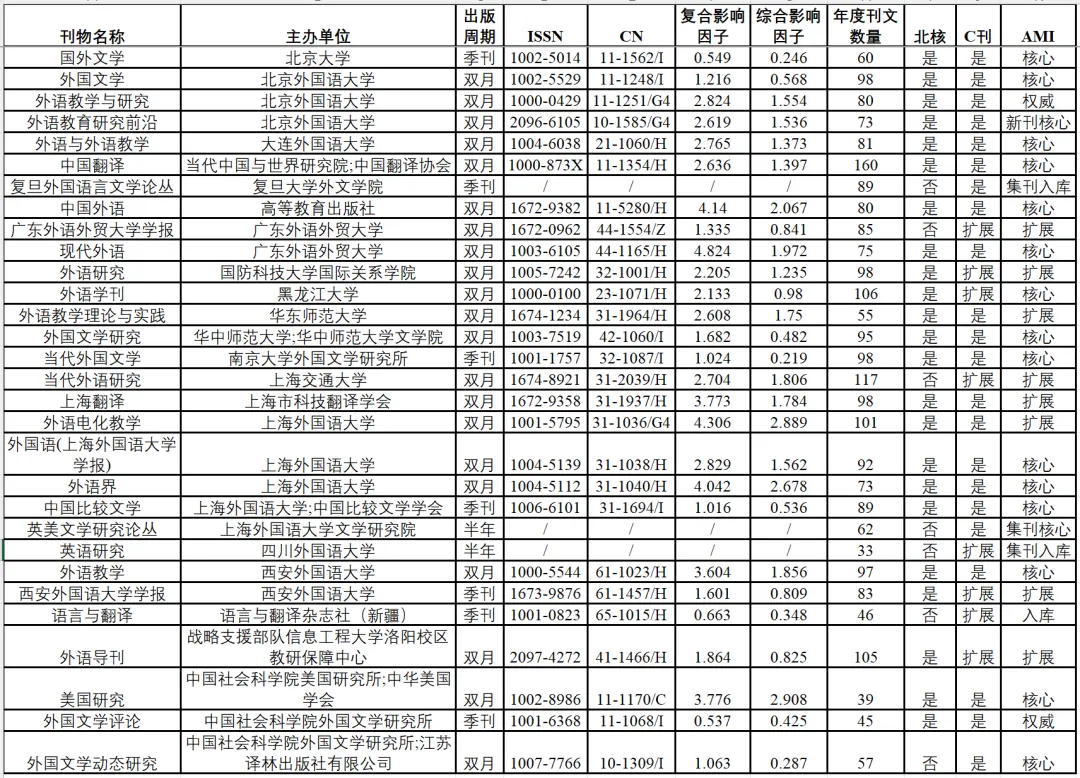 中国外语类刊物年度刊文报告(2025)——CSSCI期刊与辑刊基本信息