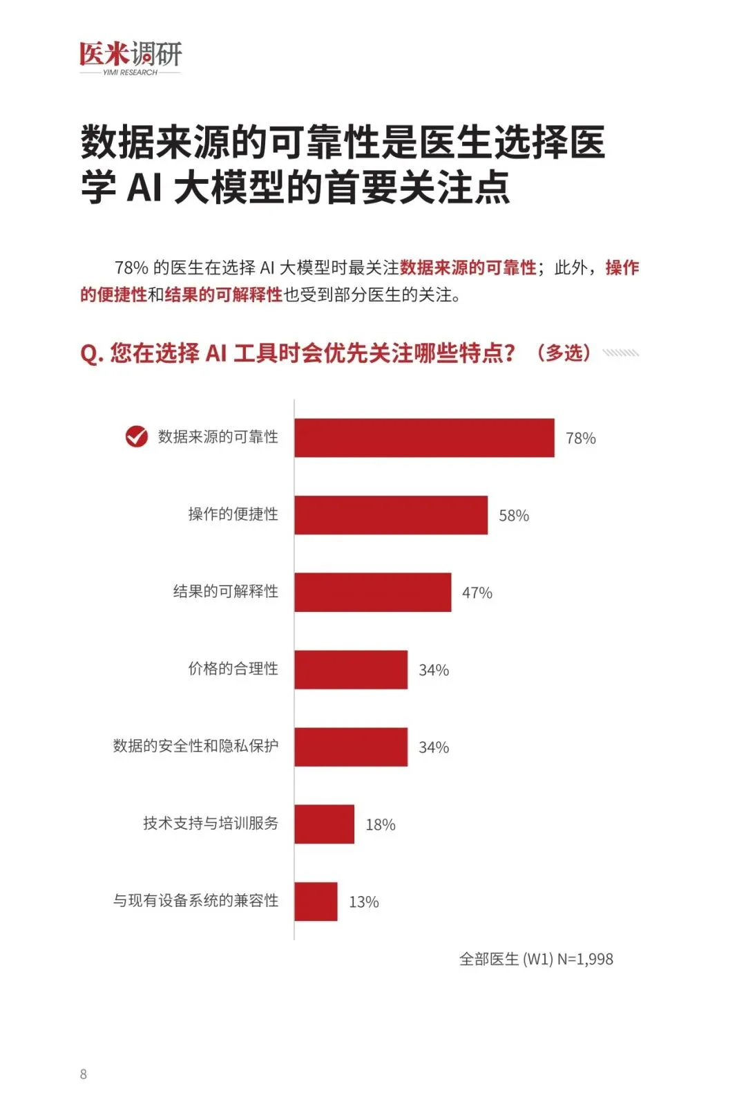 医生对AI在医疗中的积极作用普遍表示认可。尤其在辅助诊断、科研资料处理等方面,AI展现出显著潜力。值得关注的是,医生在肯定其价值的同时,也高度重视数据来源的可靠性,体现出医疗从业者对技术应用严谨性的专业要求。