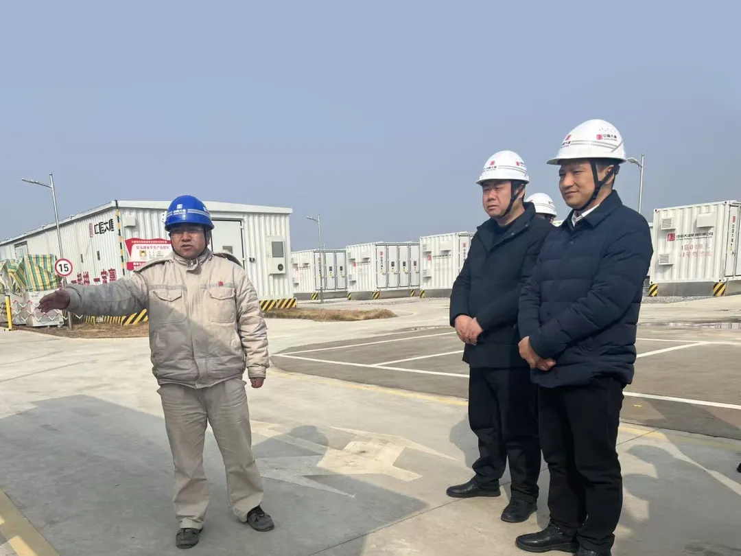 在潜江市,郭小波一行赴大唐钠离子电池储能项目基地调研,实地了解大唐新能源项目的开发、投资、建设与运营情况,与项目负责人深入探讨交流新能源领域战略合作。