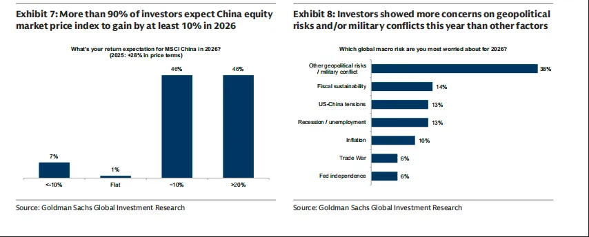 超过90%的投资者预计2026年中国股票市场价格指数将上涨至少10%,这与我们股票策略团队的观点大体一致。 尽管如此,我们要出的最新研究指出,股市上涨对家庭消费的影响非常有限,因为只有特定的部分人群会从中受益。