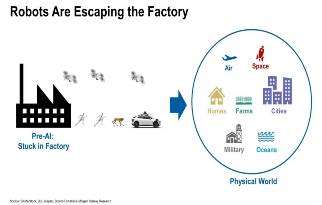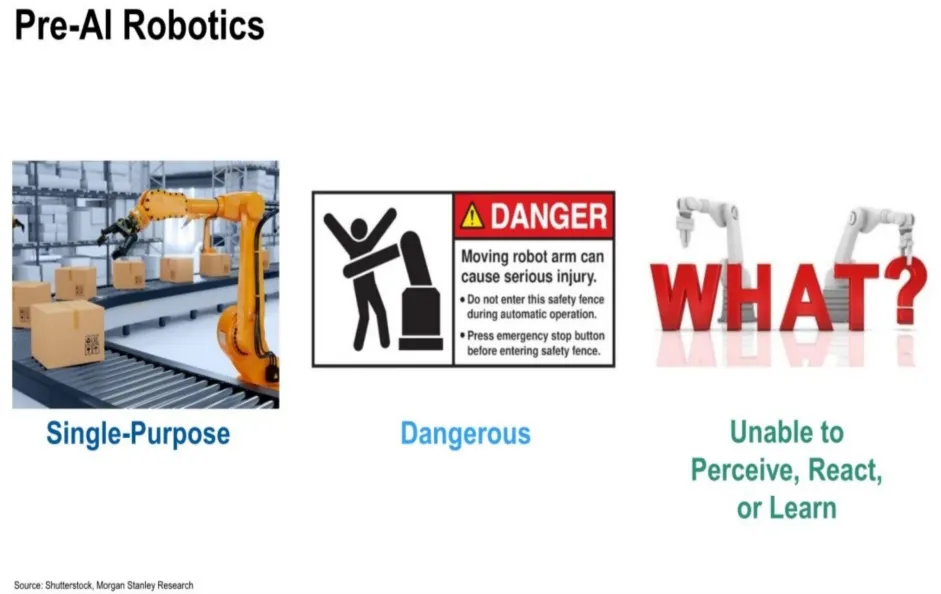 图3: 从Pre AI时代至Post AI时代机器人的转变(图源:摩根士丹利)
