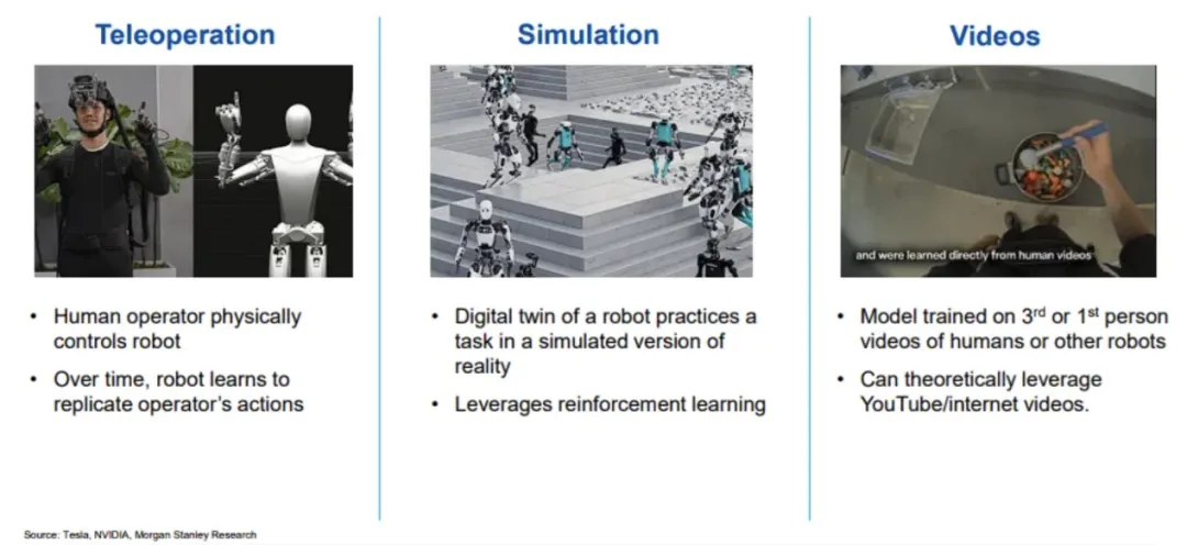 图5: 产业界收集训练数据的三条技术路线(图源:摩根士丹利)