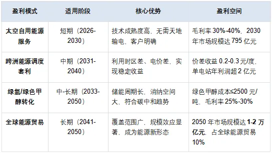 • 盈利模式:全球能源贸易(占比60%)、增值服务(能源数据、调度优化)、太空资源开发配套能源供应。