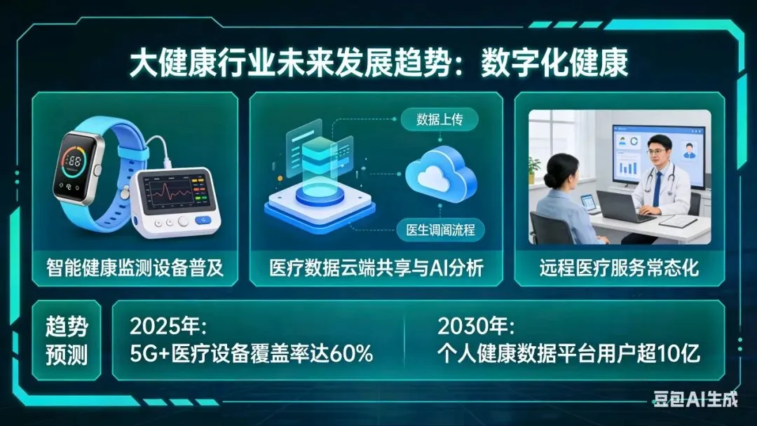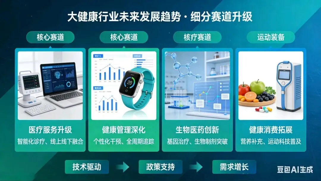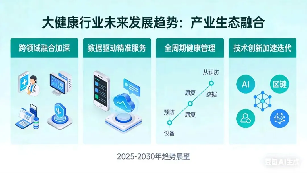 作为健康领域科普从业者,亲历了大健康行业从单一医疗服务向多元健康生态的蜕变。当下,在“健康中国”战略纵深推进、技术革新加速渗透、全民健康意识全面觉醒的背景下,大健康行业正告别单一赛道红利,进入“创新深耕+生态协同”的高质量发展新阶段,其核心发展逻辑已从“疾病治疗”转向“全周期健康管理”,未来的发展趋势也将围绕这一核心展开深度变革。