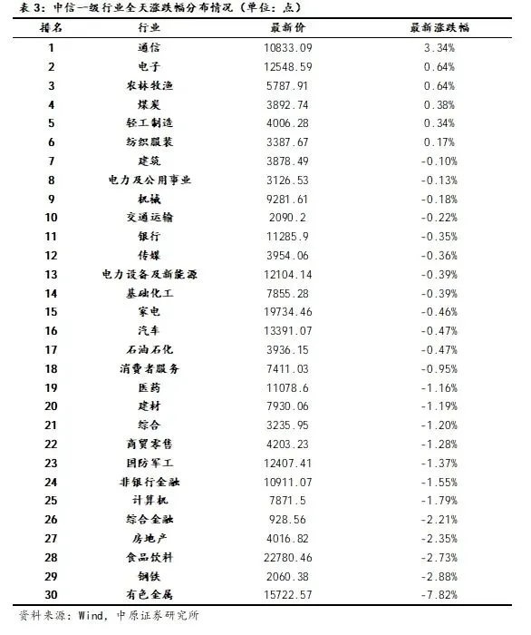 从盘中热点来看,两市超过五成个股下跌,其中农牧饲渔、造纸印刷、通信设备、装修装饰以及电子化学品等行业涨幅居前;贵金属、能源金属、采掘、有色金属以及小金属等行业跌幅居前。通信设备、电池、农牧饲渔、游戏以及煤炭等行业资金净流入居前;有色金属、小金属、互联网服务、软件开发以及能源金属等行业资金净流出居前。