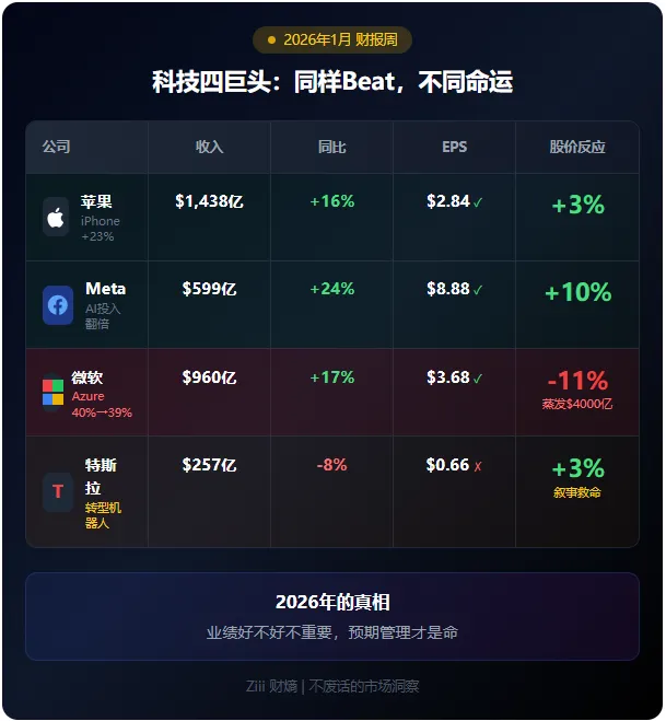 这周科技七巨头有四家发了财报,呈现出完全不同的两种命运: