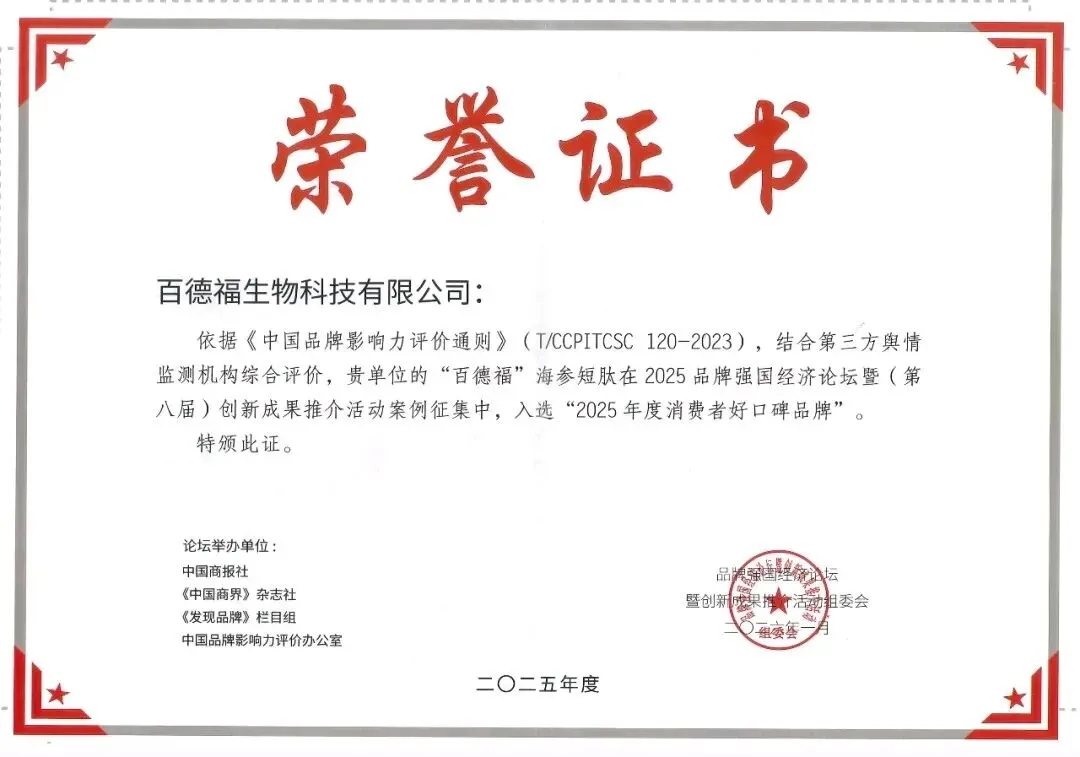 近日,2025品牌强国经济论坛揭晓了年度奖项。其中,百德福生物科技荣获 “年度消费者好口碑品牌” ,这一案例值得健康产业从业者深入剖析。