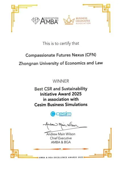 AMBA&BGA荣获全球金奖:学院凭借在责任管理与可持续发展教育方面的创新实践,首次荣获AMBA&BGA全球卓越奖“最佳企业社会责任与可持续发展举措”金奖,实现国际权威奖项的历史性突破。