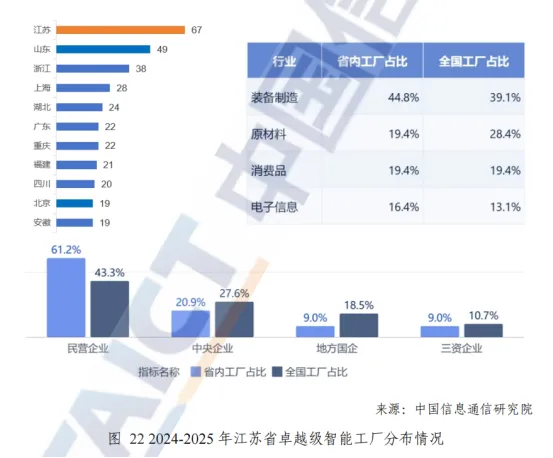 1、江苏:装备制造根基雄厚,智能工厂数量全国领先