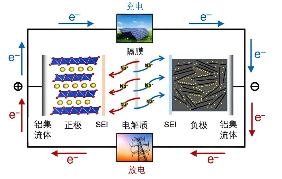 钠离子电池(Na-ion battery),是一种二次电池(充电电池),原理与锂离子电池类似,靠正负极之间的离子来回移动来实现充放电,锂电池靠的是锂离子(Li⁺),钠电池靠的是钠离子(Na⁺),电解质采用的是钠盐。