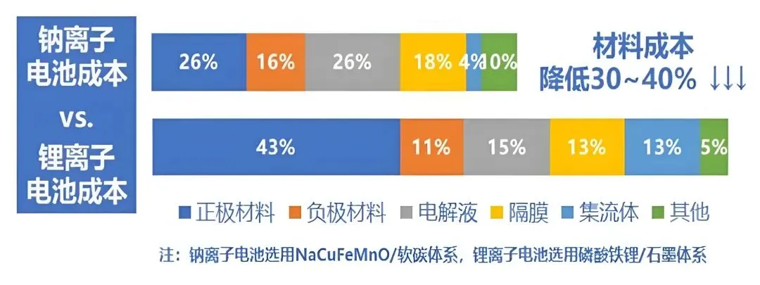 1)资源丰富,成本更低:钠地壳储量是锂的421倍,海水、盐矿里到处都是,;原材料成本仅为锂电池的30%-40%,不需要钴、镍这些贵金,;更适合做低成本、大规模的储能。