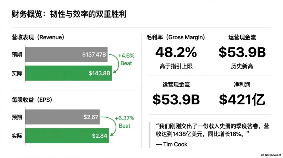 一句话总结:iPhone仍是主发动机,而且发动机在“最难的赛道”里反而踩得更猛。