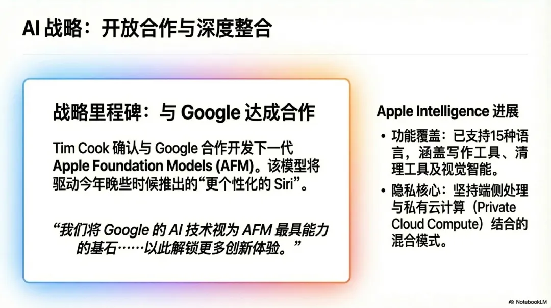 四、AI战略:苹果与Google合作做AI基础模型