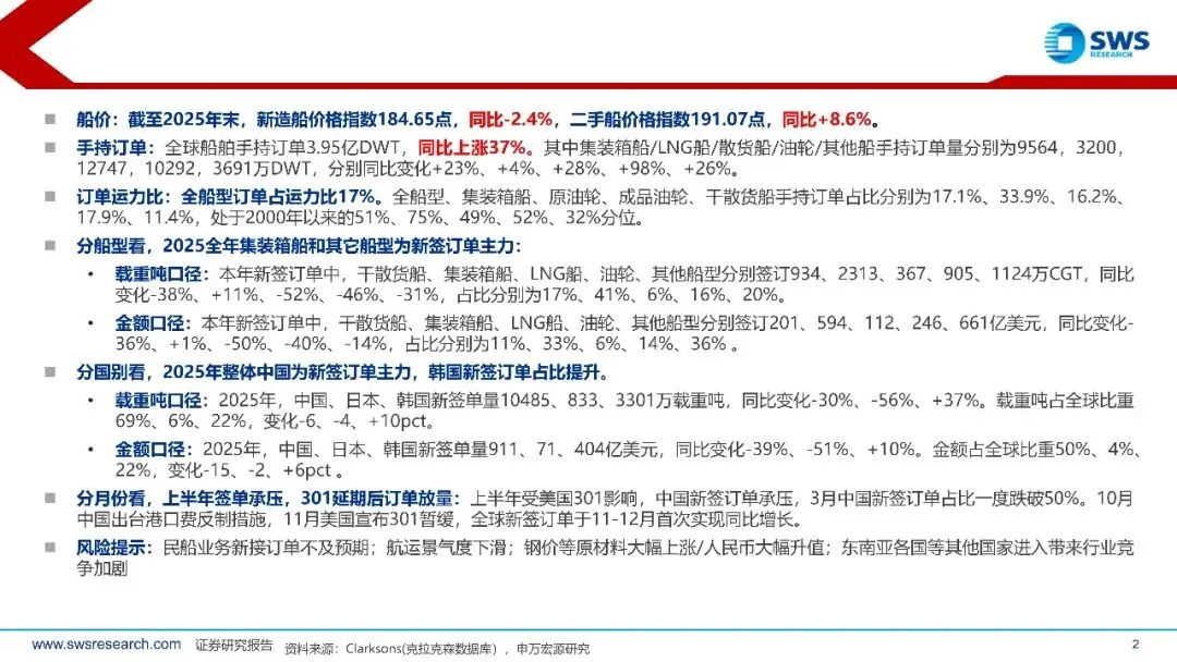 2025造船行业年度总结:二手船价领先新船企稳,下半年订单回升-260121-申万宏源-36页
