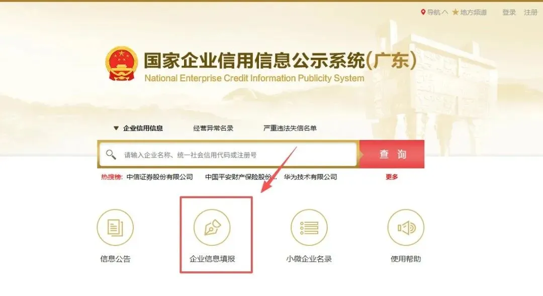 登录国家企业信用信息公示系统,点击企业信息填报
