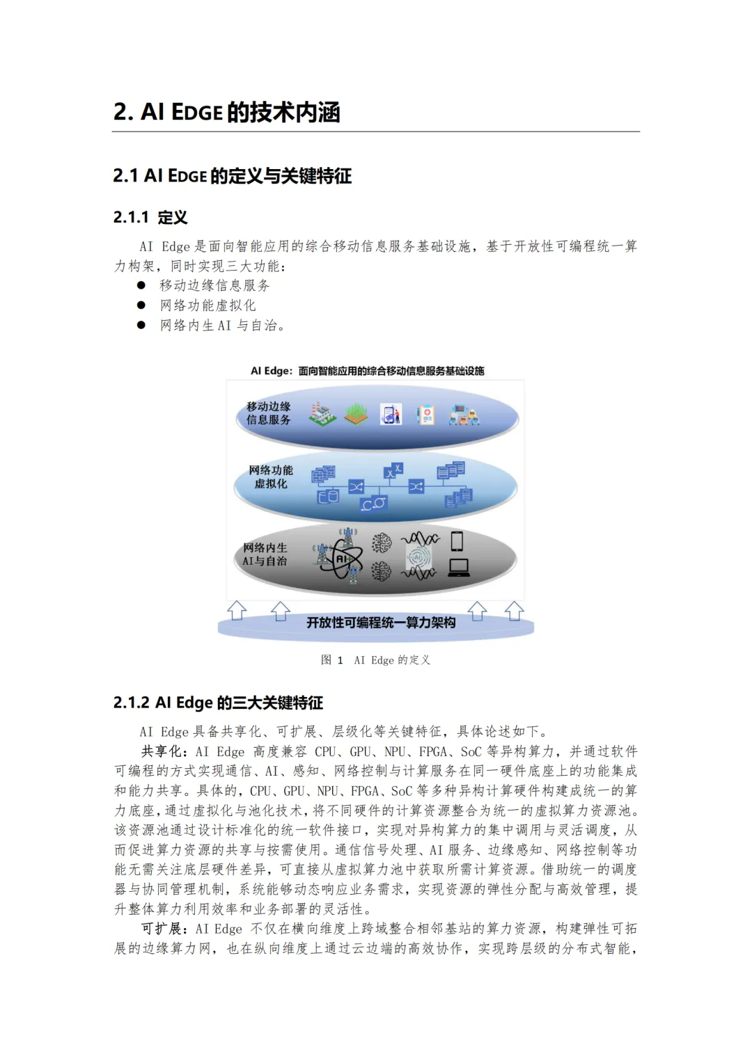 《AI Edge 需求、愿景与潜在关键技术白皮书》系统阐述了 AI Edge 作为 DOICT 深度融合的综合移动信息服务基础设施的核心价值与发展路径。在数字化转型与 6G 演进背景下,AI Edge 依托网络内置的异构可编程共享算力基座,实现通信、感知、智能、计算、控制一体化,为用户提供低时延、智能化、定制化服务,破解传统通信网络局限。