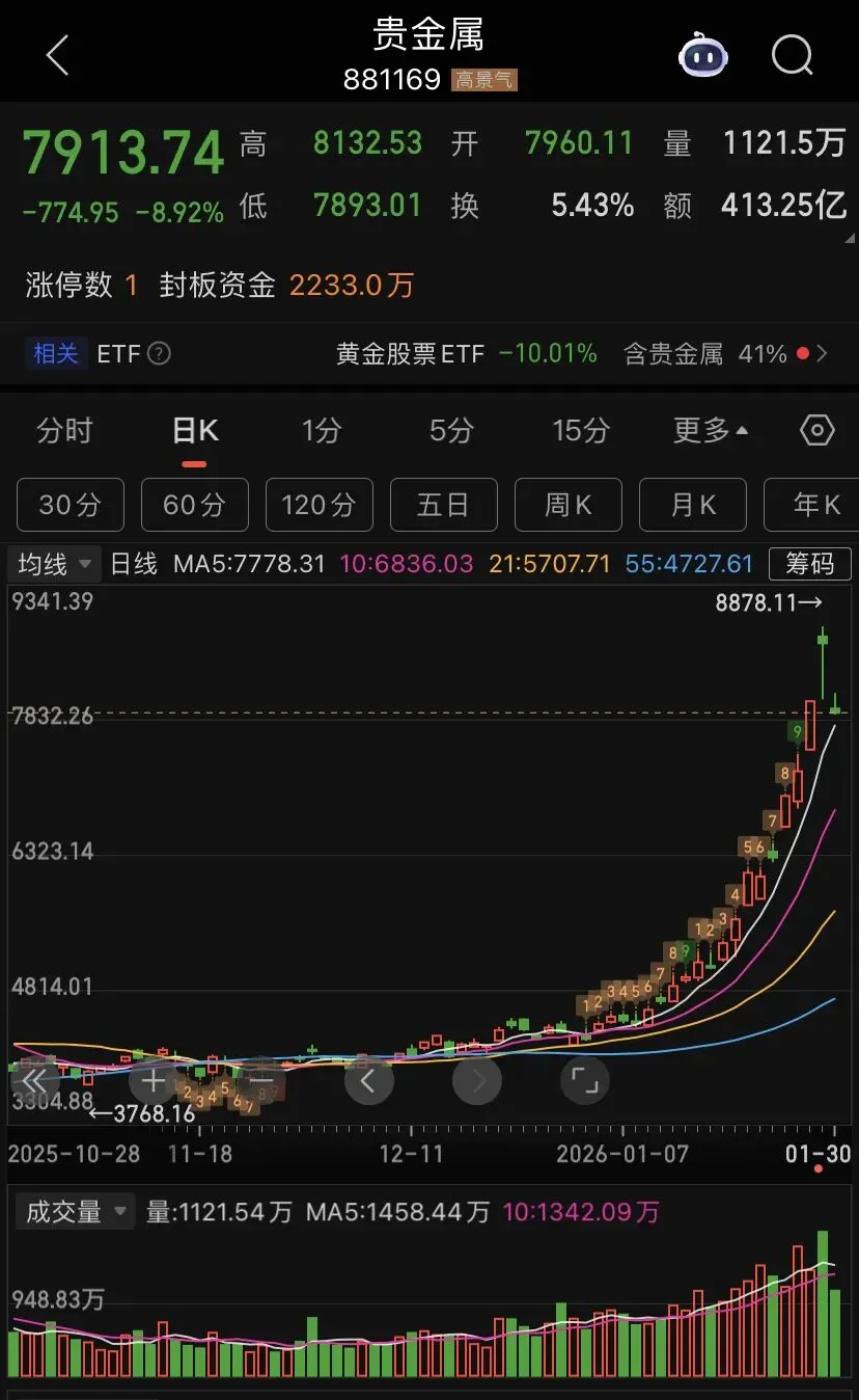 贵金属股票将迎来大幅回调,类似航天,航天怎么上来的,就怎么下去。