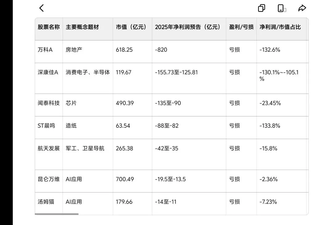 三、 财报爆雷:天雷滚滚,六大亏损股领衔(附明细)