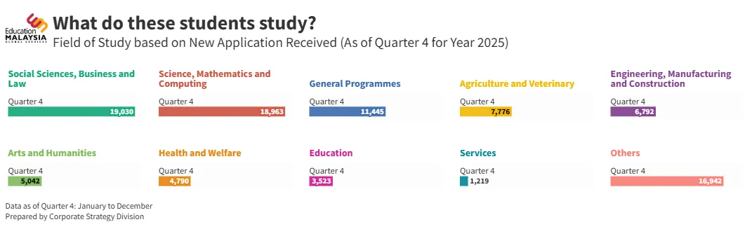 同时,全年中国学生累计申请量高达 75,434 份,约占国际生总量的三分之一,依然是马来西亚国际教育体系中最重要的生源支柱。