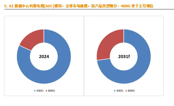 产品类型多样化:就产品类型而言,目前400G是最主要的细分产品,占据大约82.8%的份额。随着技术的不断进步,未来AEC模块的产品类型将更加多样化,以满足不同应用场景的需求。
