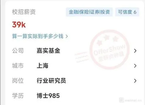 嘉实基金校招,行研岗只要985博士,月薪直接砸到39k。底下网友炸了:读到博士才拿这个数?另一波人回怼:你看看这是什么行业,这是离钱最近的地方!