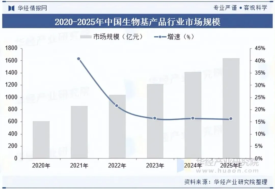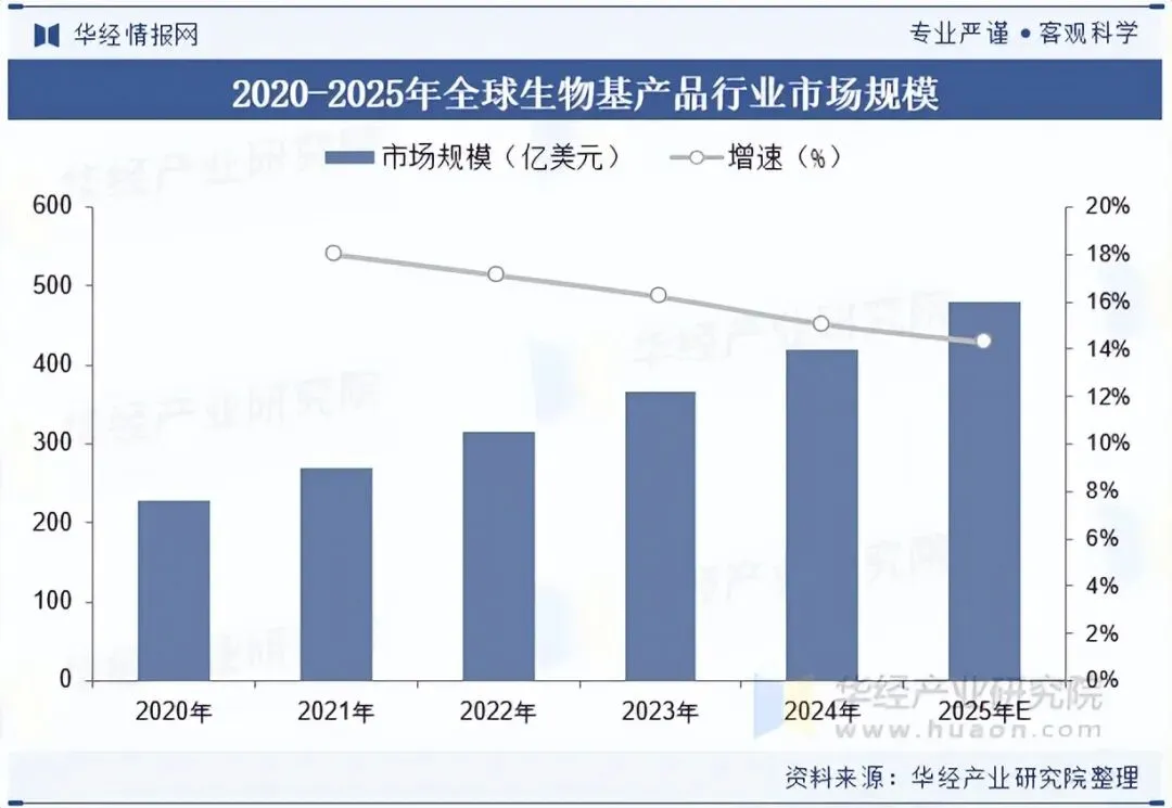 生物基产品可作为传统石油基材料的可持续替代品,涵盖包括润滑剂、清洁剂、油墨、肥料及生物塑料在内的广泛应用。数据显示,2024年全球生物基产品行业市场规模约为421亿美元,2020年至2024年的复合年增长率为16.6%。