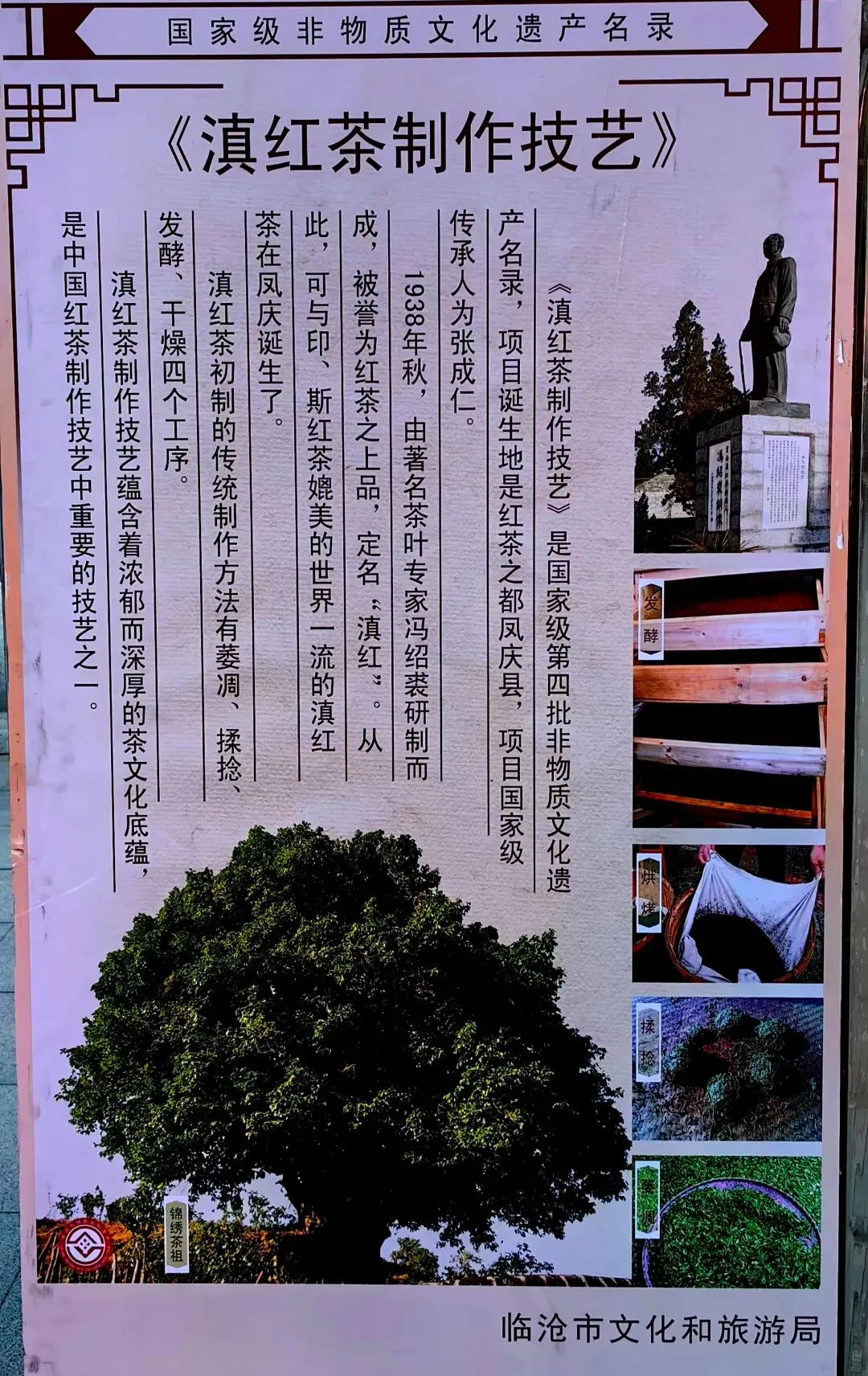 凤庆县坐落于云南临沧,地处澜沧江流域世界茶树原产地核心地带,是滇红茶的诞生地,素有“中国红茶之都”“世界滇红之乡”的美誉。这里种茶、制茶历史源远流长,境内留存着5.6万多亩野生型、栽培型古茶树群落,其中拥有地球上已发现的最粗大、最古老的3200多年栽培型古茶树——锦秀茶尊,得天独厚的自然条件孕育出优良的国家级凤庆大叶群体茶树品种,为滇红茶的优质品质奠定了先天基础。