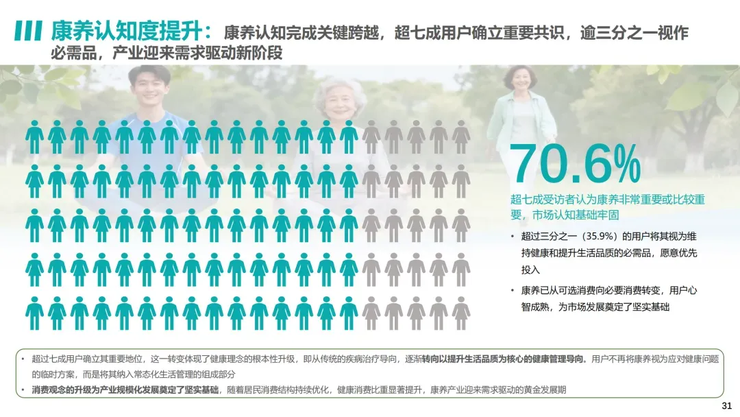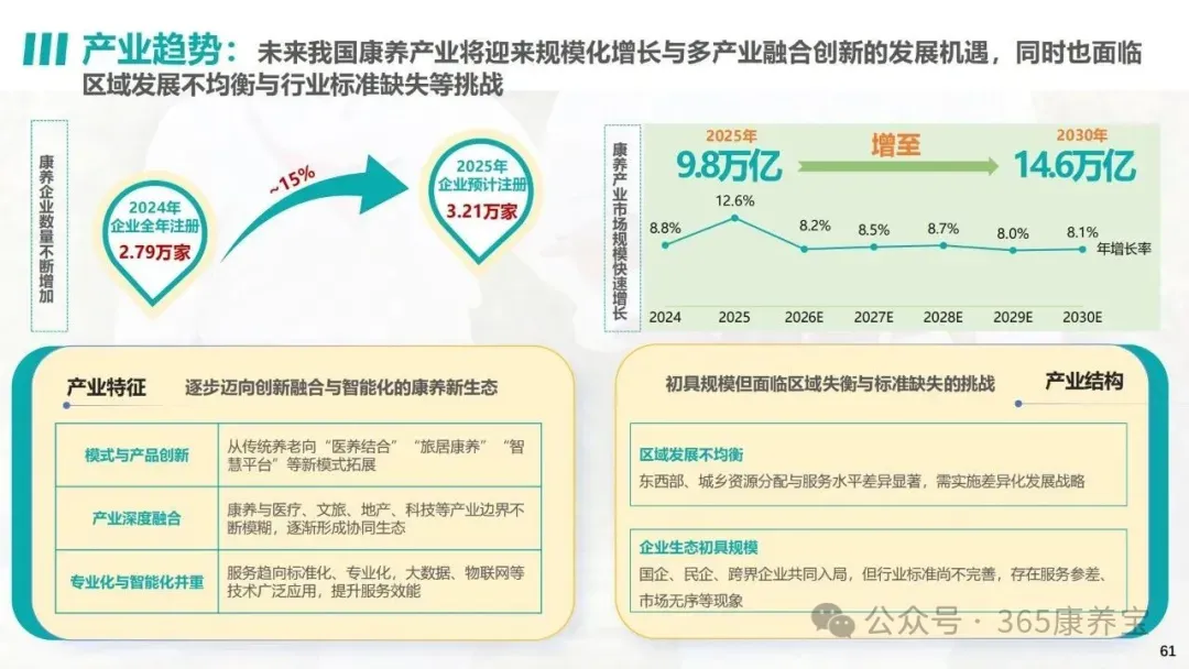 四是产业融合深化,“康养+旅游”“康养+保险”“康养+地产”等跨界模式蓬勃发展,成都更是将森林康养纳入医保支付,推动康养与社会保障深度衔接。