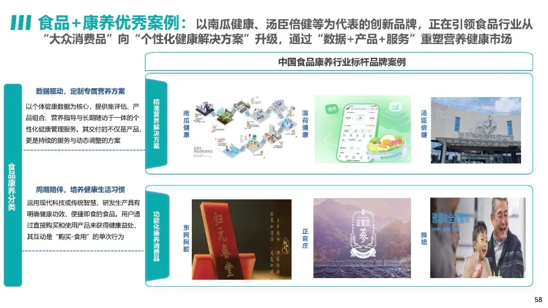 6.食品+康养赛道从“大众消费品”向“个性化健康解决方案”升级,南瓜健康以AI算法为核心,基于用户体检数据和生活习惯,提供定制化营养方案。采用周期订阅制配送营养餐盒,建立专属营养社群提供持续陪伴服务,其方案经临床科研验证,获医疗体系“处方化”认可,构建了专业壁垒。