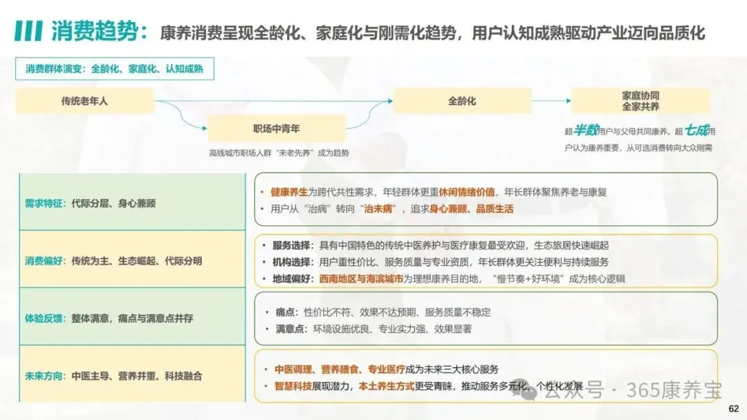 随着健康理念的普及和消费需求的升级,康养产业正从政策驱动向需求驱动转型,从单一业态向生态融合发展。未来,只有精准把握全龄化、智慧化、融合化的发展趋势,聚焦用户真实需求,通过政策引导、技术创新、模式升级和服务优化,才能推动康养产业实现高质量、可持续发展,让康养成为每个人美好生活的重要组成部分。