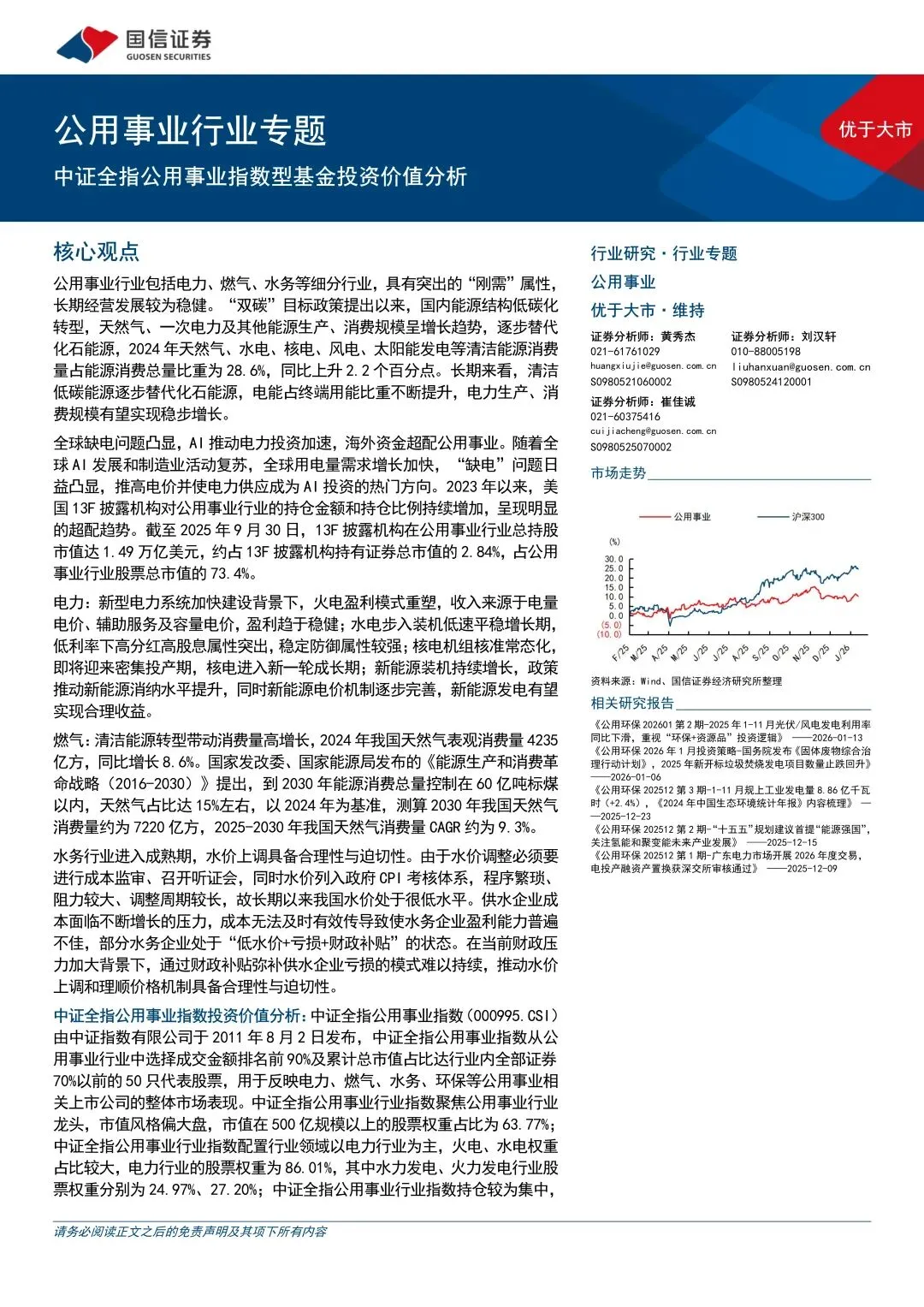 公用事业行业专题:中证全指公用事业指数型基金投资价值分析-260117-国信证券-35页