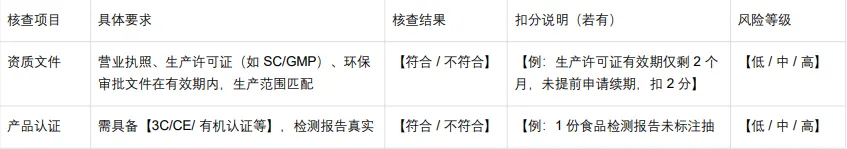 本次验厂依据《自有品牌生产方验厂标准》,通过 “资料核查 + 现场走访 + 人员访谈 + 抽样检测” 四重方式,覆盖生产方“基础合规、品质保障、合作适配”三大核心维度。验厂期间,生产方【配合情况】(例:积极配合,无隐瞒信息 / 部分环节延迟提供资料),共核查文件【 】份,现场抽检样品【】批次,访谈员工【 】人,形成本报告。
