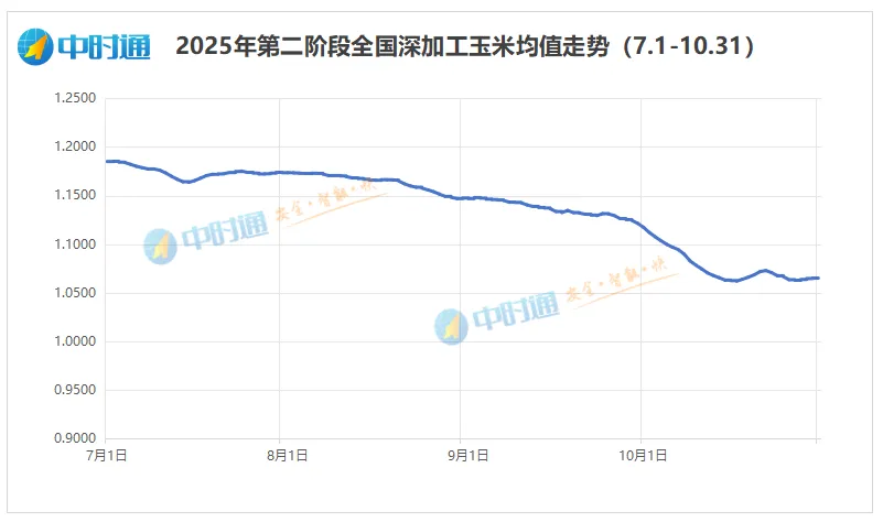 压力测试,价格回落!价格进入漫长的回调通道。三季度市场在旧作有限的微弱支撑和新作丰产预期以及替代品的压制间反复博弈,重心逐级下移。10月玉米市场正式迈入新粮上市期的集中“压力测试”阶段,华北持续的“烂场雨”导致新粮品质分化,基层农户和贸易商为规避坏粮风险,被迫集中抛售潮粮,深加工压价意愿强烈,价格多次下探。东北新粮“高开低走”,丰产预期压制价格,直至中储粮开库收购,才为市场划出政策底。尽管在此期间行情并非单边下行,区域分化、品质分层与政策托底的多重力量交织博弈,让市场在跌势中暗藏机遇与反弹星火。但在整体供应压力牵制下,玉米价格已从年中高点大幅回落,几乎回吐了上半年大部分涨幅。