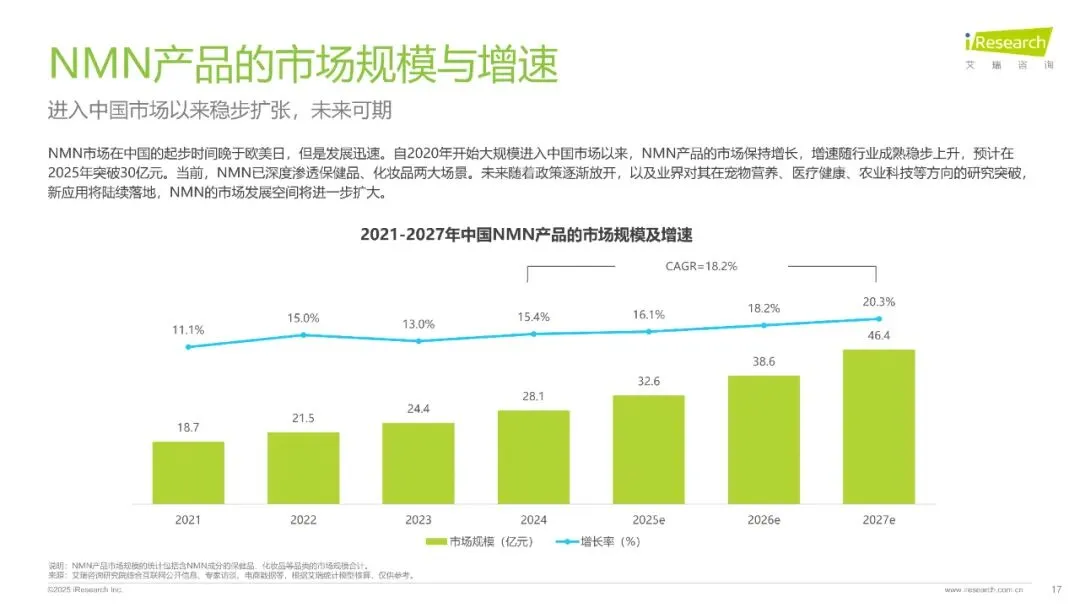 随着人口老龄化加剧和年轻群体“抗初老”需求增长,叠加合成技术突破降低成本,NMN市场潜力持续释放。