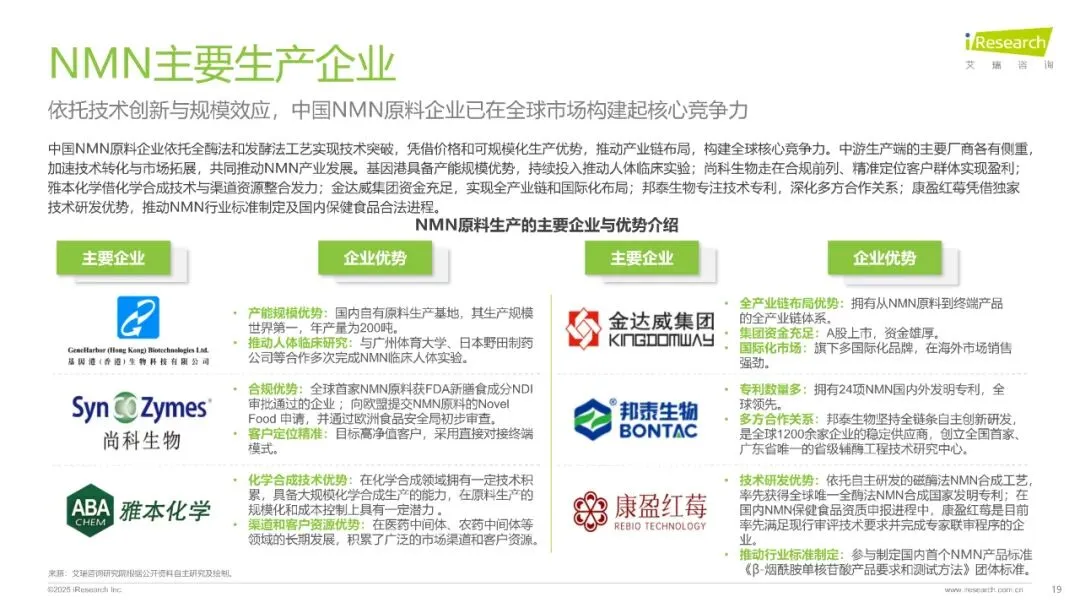 中国已成为全球最大NMN原料生产国,头部企业通过技术创新构建竞争壁垒。