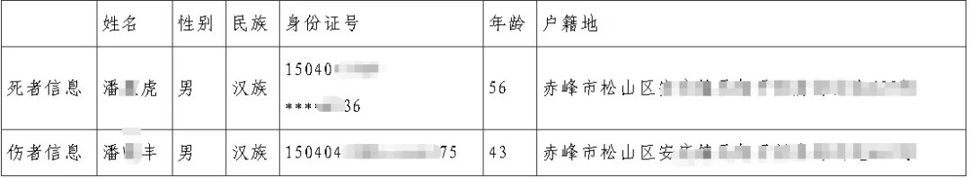 21时56分119到达现场,22时15分120救护车到现场后立即对两人紧急救治,潘振虎经抢救无效死亡,潘晓丰经抢救后转院送至赤峰市医院进行救治,无生命危险,经救治现已康复出院。